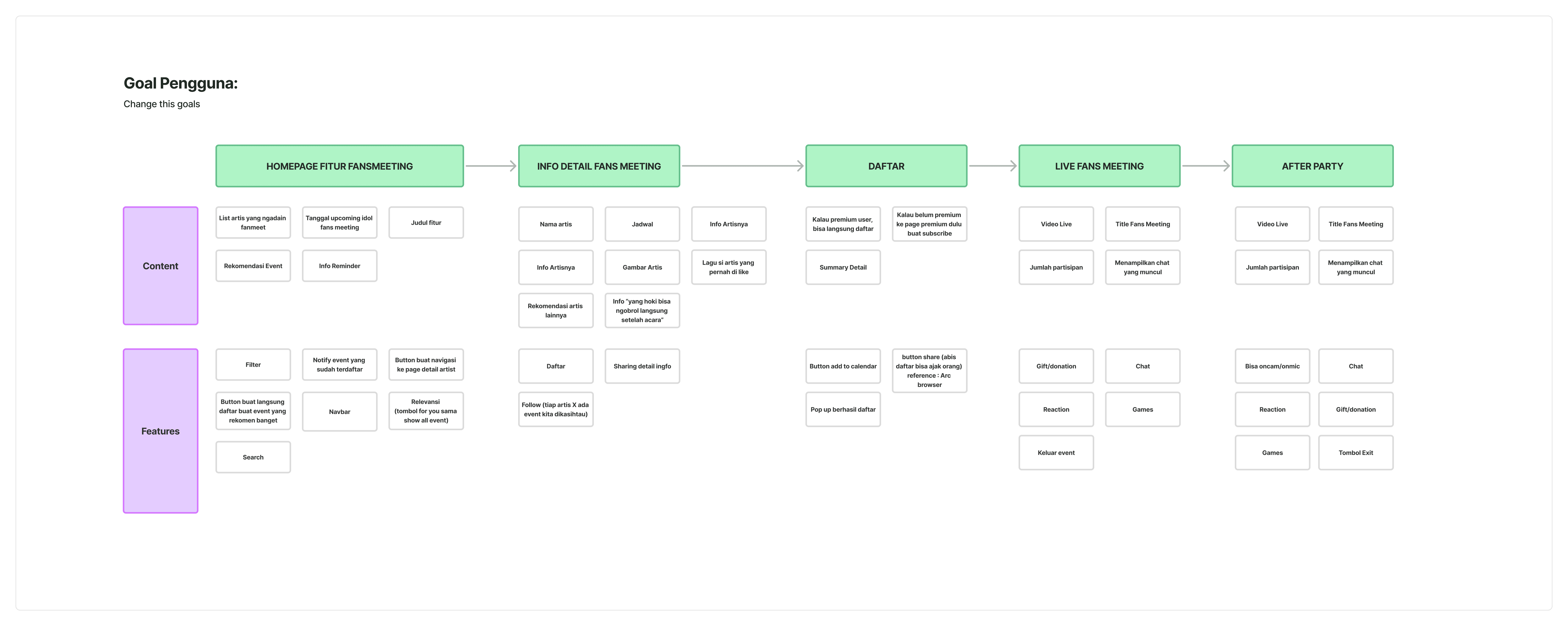 🔥 Objective: Proyek "FansMeet" baru spotify memungkinkan adanya fitur baru yaitu untuk meningkatkan keterlibatan user dan memungkinkan pengguna bertemu idola mereka secara virtual. Berdasarkan data, 70% pengguna spotify menunjukan minat untuk berinteraksi langsung dengan idolanya, sehingga harapannya menarik 50.000 partisipan dalam 3 bulan pertama peluncuran dan meningkatkan keterlibatan 30% dari seluruh pengguna spotify. Proyek ini juga diharapkan dapat mendorong pertumbuhan aktif pengguna Spotify sebesar 20%