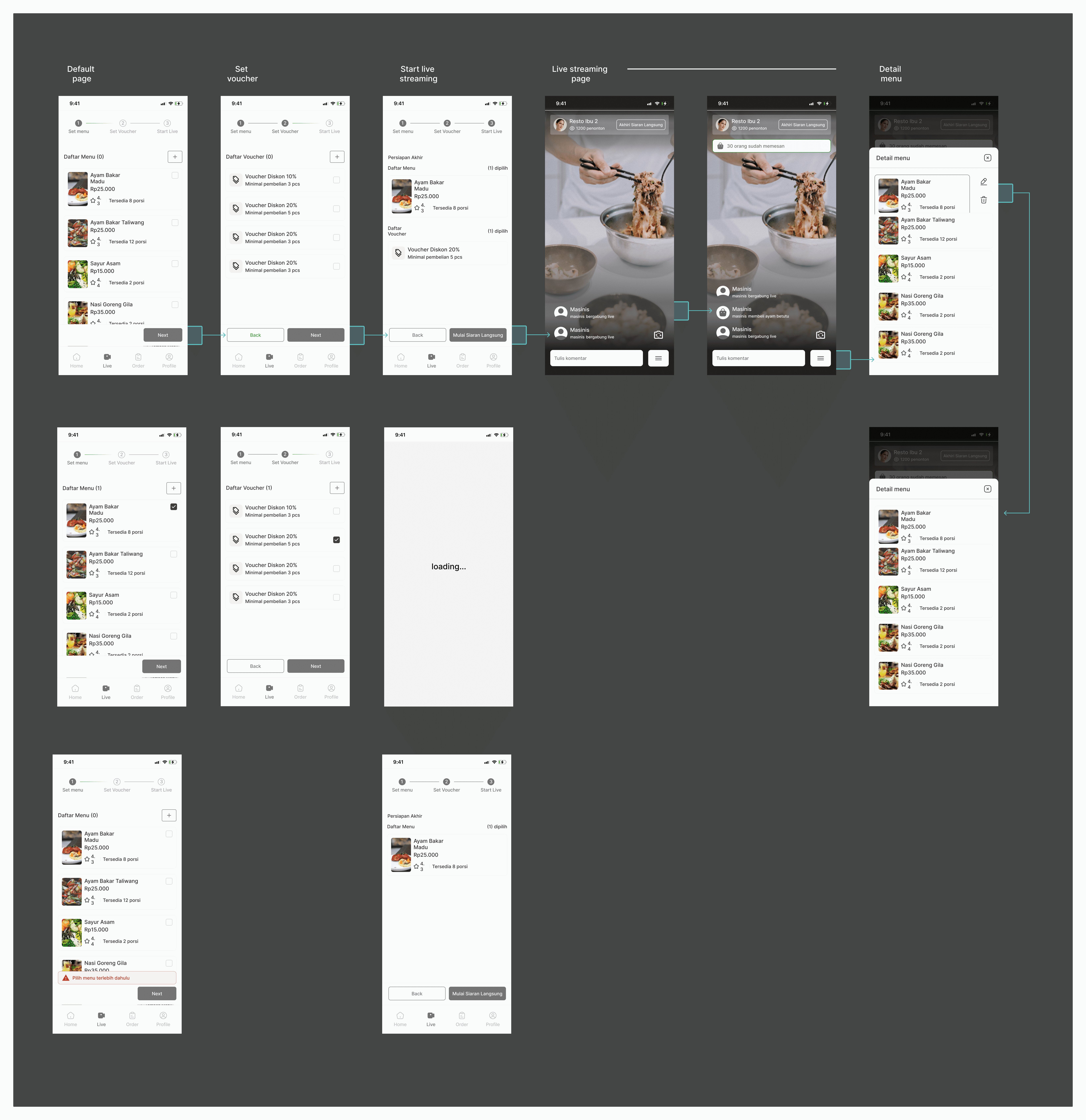 🔥 Objective: Membuka peluang baru restoran dan pedagang makanan dapat melakukan live streaming, sehingga konsumen dapat langsung melihat proses memasak, kebersihan dapur, dan presentasi makanan. Kami berharap fitur ini akan meningkatkan kepercayaan konsumen dalam memesan makanan, meningkatkan keterlibatan pengguna, dan mendorong peningkatan pesanan hingga 20% dalam tiga bulan pertama setelah peluncuran.